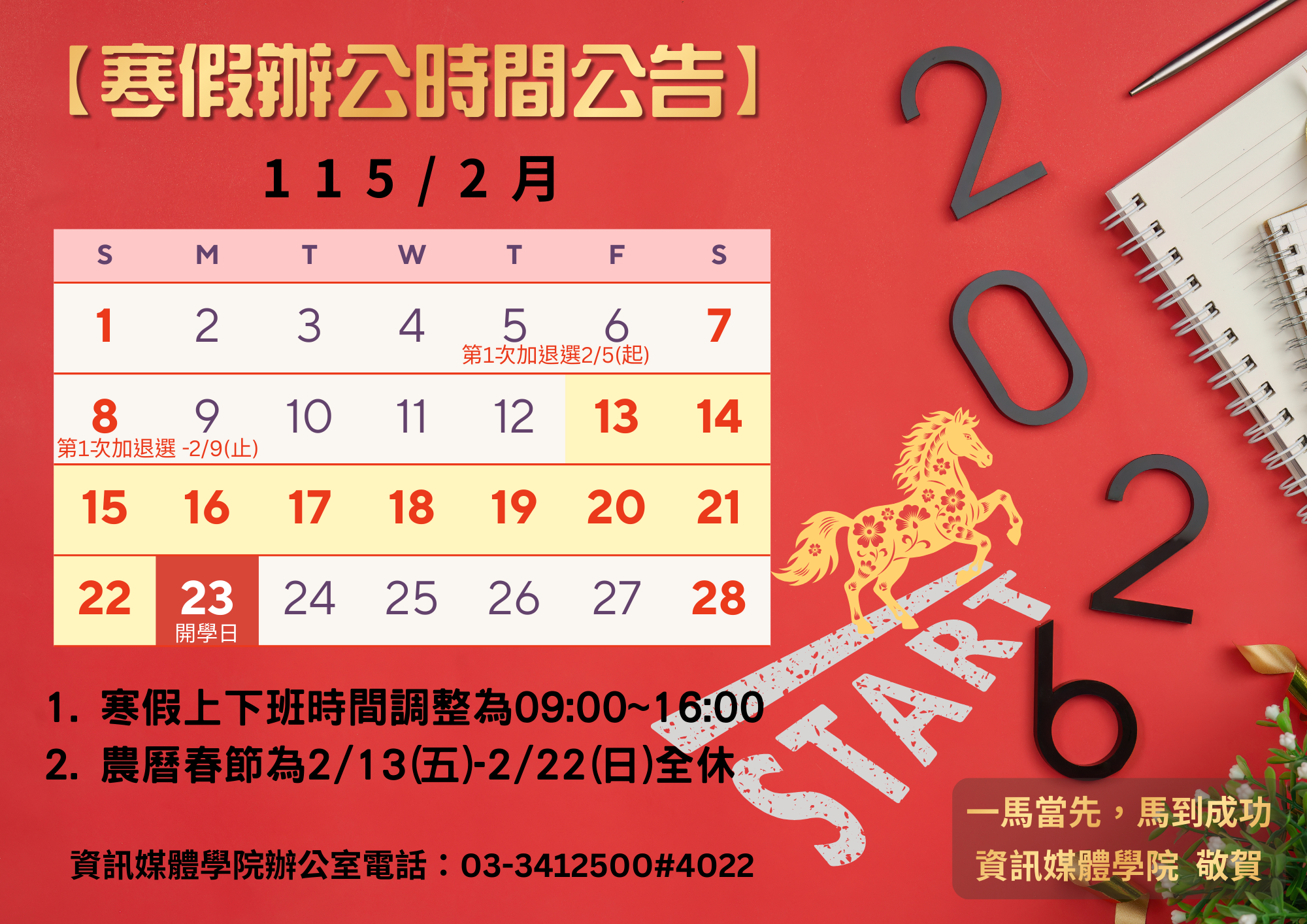 115年寒假期間上班時間公告